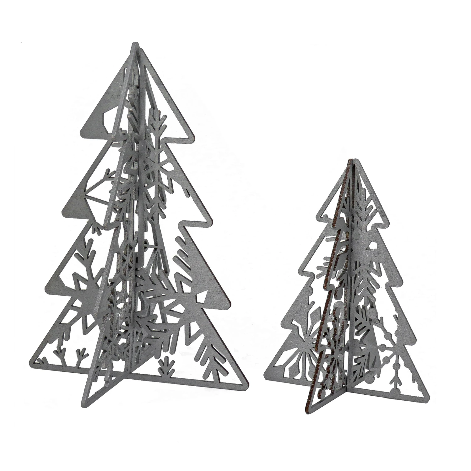 These silver wood tabletop Christmas trees, measuring 10 inches and 7 inches, bring a stylish touch to your holiday decor. Their sleek, metallic finish adds a modern flair, while the wooden texture provides a warm contrast. Perfect for displaying on mantels, tabletops, or as part of a festive centerpiece, these trees add a charming yet elegant touch to your seasonal celebrations!
