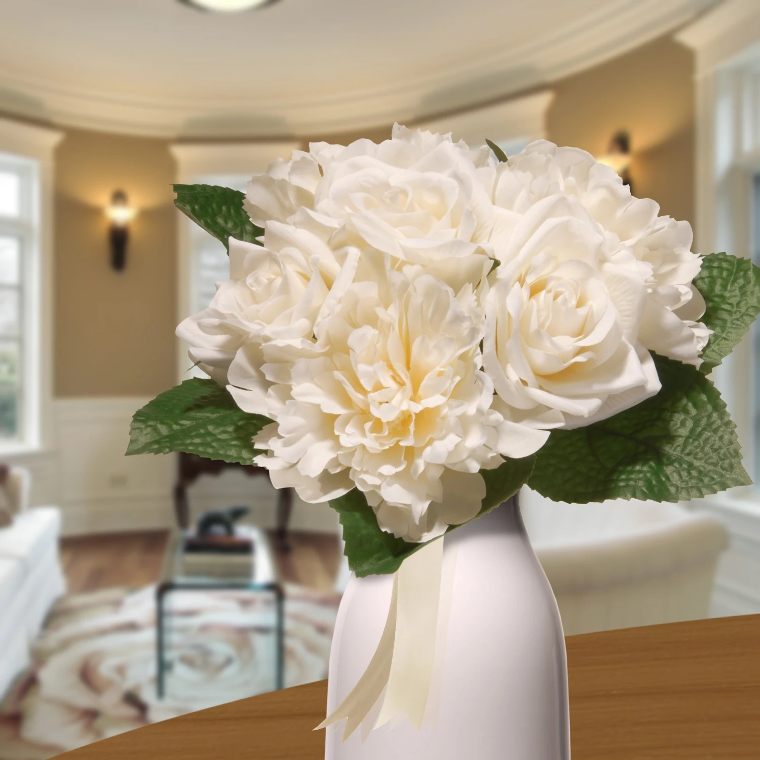 Invite the natural color and feel of the spring season into your home and garden with National Tree Company’s Artificial Floral Bouquet. This spectacularly spring decoration is the perfect complement to any decorative arrangement, featuring large blooms of cream roses and peony flowers, ribbon, and a swirl of leafy greens. Crafted with sturdy, high quality materials, this artificial plant decoration is designed to capture the warmth and colors of the spring season year after year. Suitable to be displayed indoors, place this artificial plant decoration on a table or in a living room to add a natural accent to any area of the house. At National Tree Company, we believe that special seasonal memories do not have to be far and few between. This spring, let our decorations transform your home while you focus on creating more of those magical moments. Includes one Artificial Floral Bouquet that measures 12 inches in length and is designed with a thick, woven vine stem base.