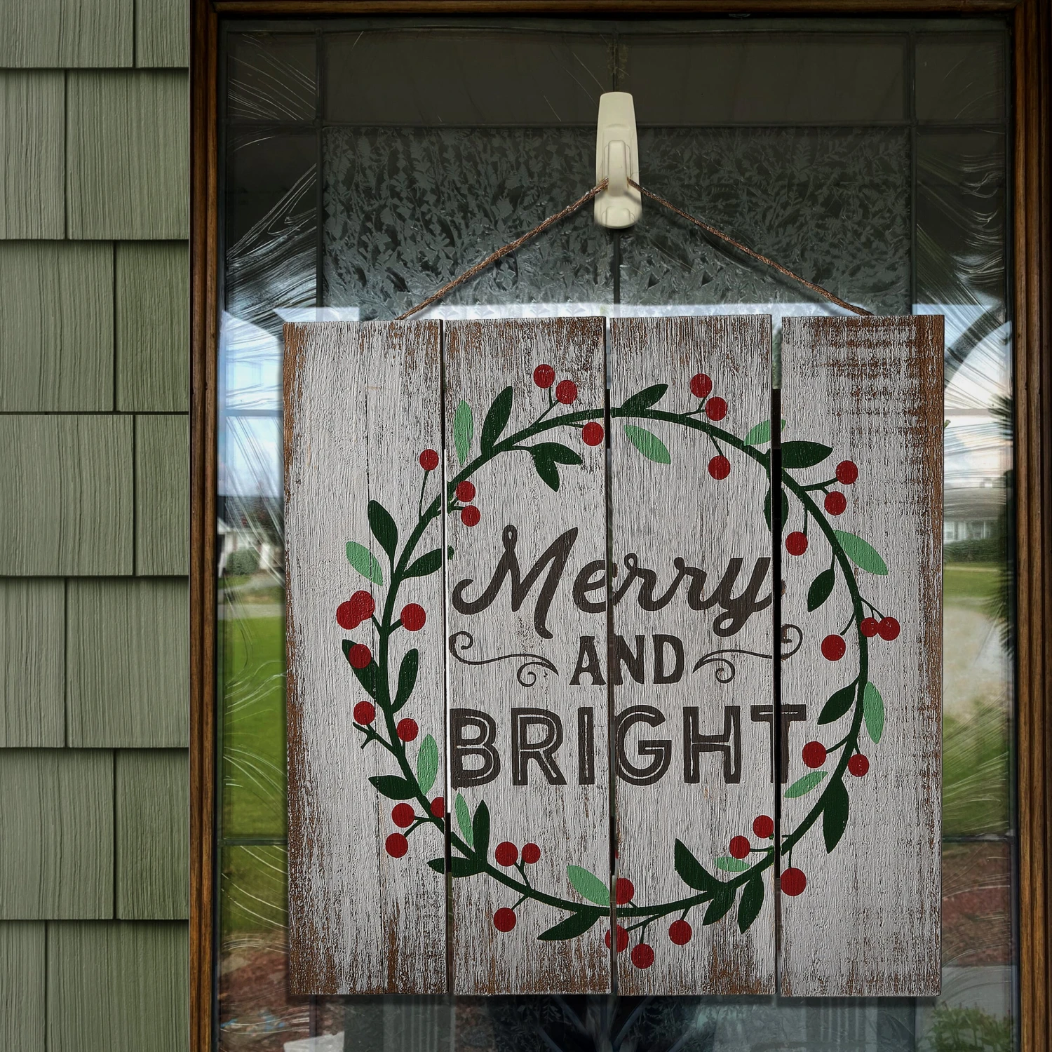 Welcome visitors during the Christmas holiday with this Merry and Bright White Wash Wooden Wall Sign. It is constructed of lightweight wood slats painted in a distressed white finish. The whitewash finish gives it a rustic, cozy feel, perfect for the holiday season. The phrase “Merry and Bright” captures the festive spirit beautifully, making it a cheerful addition to your decor. With the hanging loop, it can be easily displayed in various spaces, whether it’s in a living room, entryway, or kitchen.