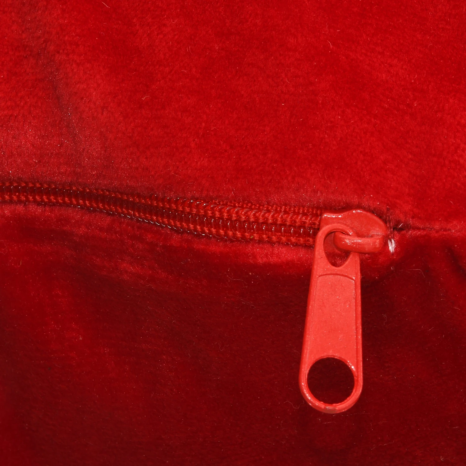 - Features a bright red polyester blend cover and polyester fill, a heart-shaped cutout in a contrasting deep black color and stitched in the center is a???I Love You” in script lettering.