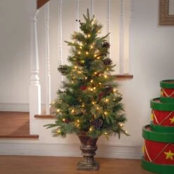 The Crestwood Spruce is a sparkling mixed branch wreath featuring bristle tips and trimmed with pine cones, red berries and glitter. It is pre-strung with 35 clear lights that remain lit even if a bulb burns out. This wreath can be displayed on doors, walls and windows in indoor or covered outdoor locations.