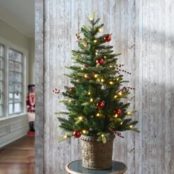 4.5 Ft. Pre-lit Linden Spruce Wrapped Tree With Warm White LED Lights