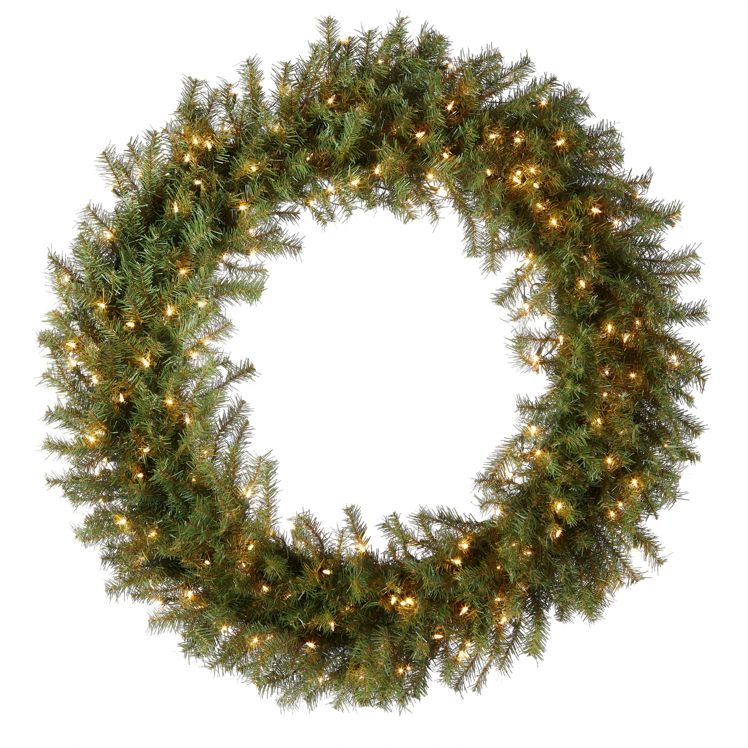 The Norwood Fir is a thick, full wreath featuring many more branch tips than other wreath styles of similar size. It is pre-strung with 200 clear lights that remain lit even if a bulb burns out. This wreath can be displayed on doors, walls and windows in indoor or outdoor locations.