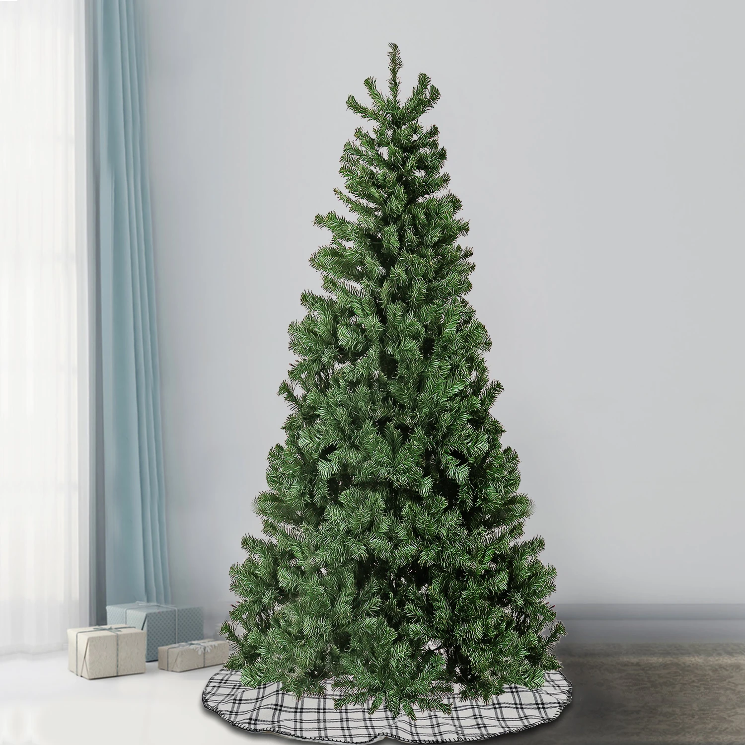 The Sagamore Slim Tree offers a thin profile making it a great choice for display in corners or in areas where floor space is limited. Featuring a generous number of branch tips for holding holiday trimmings and crafted with high quality materials. Hinged branches for easy set up and includes a sturdy metal folding stand. For indoor display only.