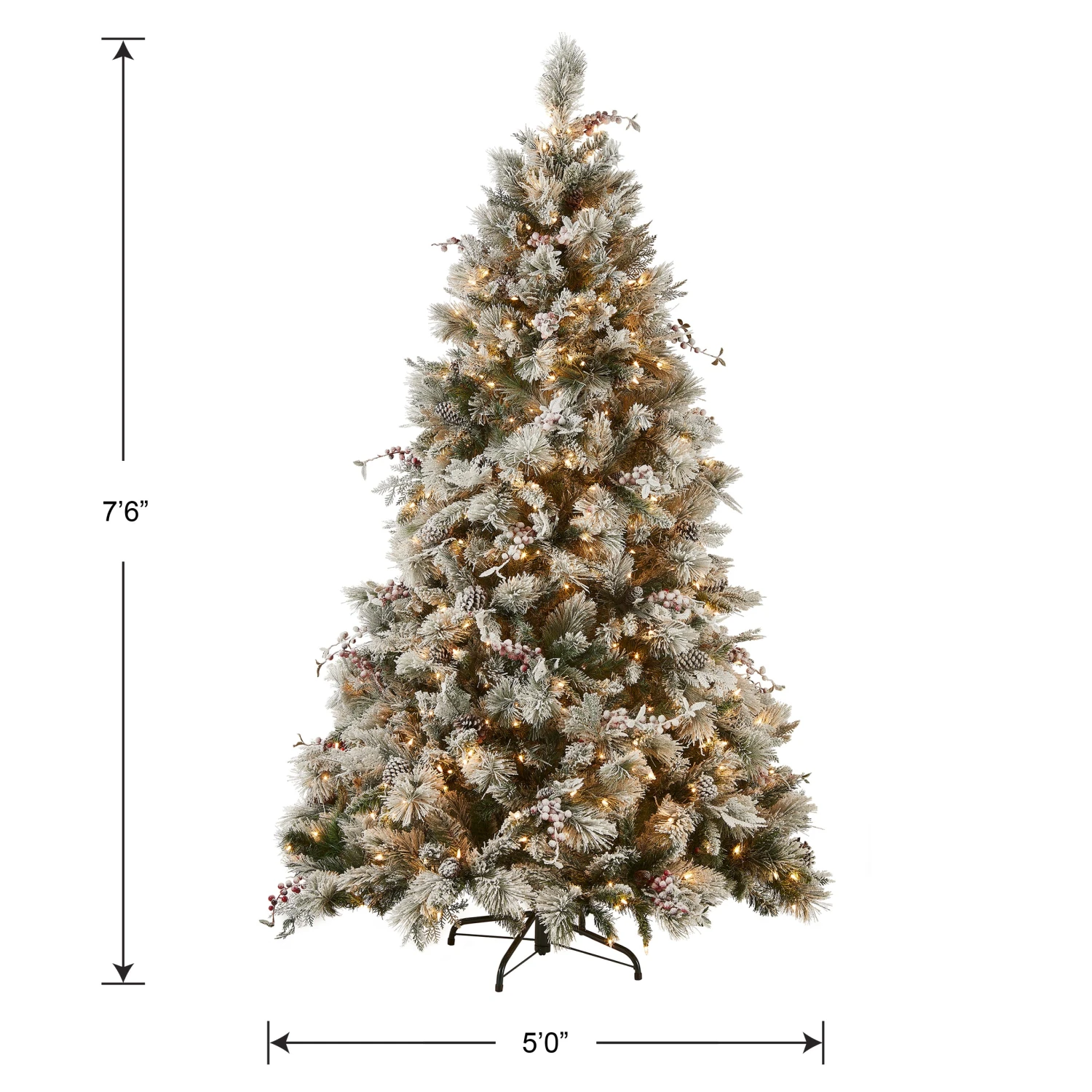 - This Snowy Bedford Pine Pre-Lit Artificial Green Christmas Tree is 7.5 feet tall with a 60 inch base diameter. Featuring hundreds of individually crafted branch tips to create full bodied branches, this tree is designed to look and feel lifelike.
