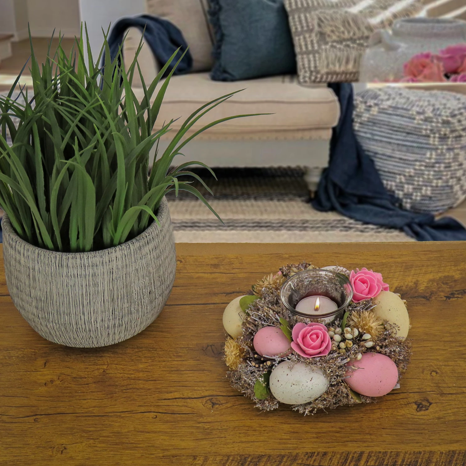Capture the essence of the Easter season with National Tree Company’s Artificial Candleholder Table Decoration. This artificial candleholder decoration is decorated with pink flower blooms, colorful pastel eggs, berry clusters and a variety of twigs and leaves. Place this delightful decoration on a table, windowsill or mantle indoors to add a fun and natural flair to any Easter-themed decorative arrangement. Beautifully crafted with sturdy, durable materials, this decoration is sure to capture the faithful and festive spirit of the Easter season for years to come. Includes one artificial candleholder table decoration that measures 7 inches in diameter and 3 inches in height and is designed to hold one tea light candle. At National Tree Company, we believe that special holiday memories do not have to be far and few between; this Easter, let our decorations transform your home while you focus on creating more of those magical moments