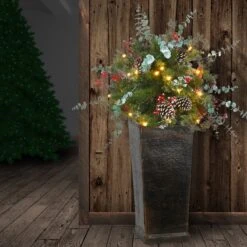 - Trimmed with pinecones and cream berries