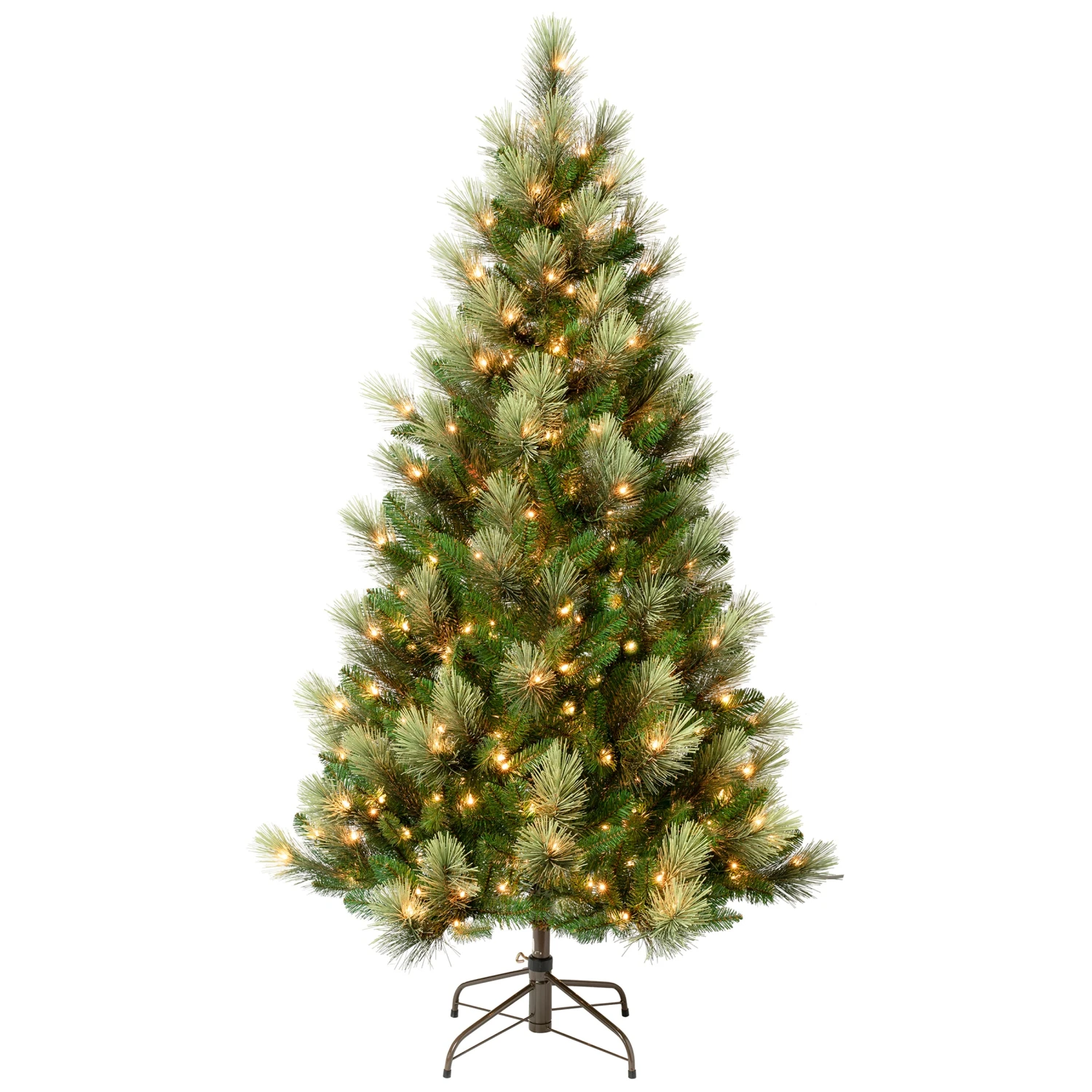 Delight your holiday guests with this Charleston Pine tree. This tree is crafted with hinged branches and pre-lit with 600 clear lights providing that perfect Christmas glow. This tree is crafted with high quality materials and hinged branches for easy set up and includes a sturdy metal folding stand. For indoor display only.
