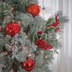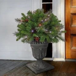 24 In. Pre-Lit Glittery Bristle Pine Porch Bush With Twinkly LED Lights