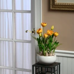 12 In. Spring Orange Flower Blooms Potted Plant In Black Ceramic Pot