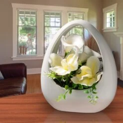 9 In. Spring Hydrangea Blooms Flower Potted In A White Pot Base