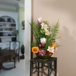 Artificial Potted Flowers, Pink Dahlias, Includes Black Pot Base, Spring Collection, 7 Inches
