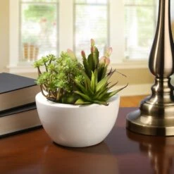 8 In. Spring Potted Plant With Various Green Succulents In A Stylish White Ceramic Base