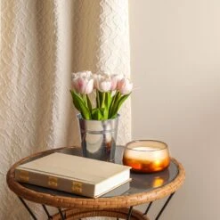 9 In. Spring Hydrangea Blooms Flower Potted In A White Pot Base