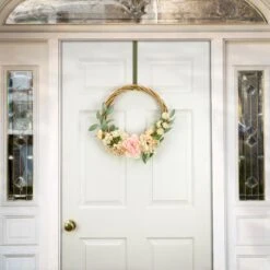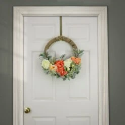 20 In. Spring Hoop Wreath With Peony, Rose, And Lamb’s Ear Flower Blooms