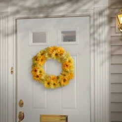 19 In. Spring Wreath With Yellow, White, Pink And Blue Flower Blooms, Green Ivy, Berries