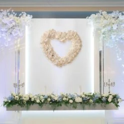18 In. Valentine’s White Roses And Hydrangea Blooms Floral Wreath