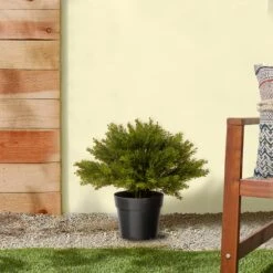 15 In. Spring Potted White Orchid And Blue Roses Flower Pot With Leafy Greens