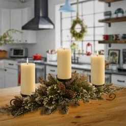 26 In. Pre-Lit Glittery Bristle Triple Wreath With LED Lights