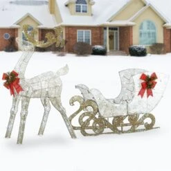 Pre-Lit Red And White Gift Boxes, Set Of Three, White Lights