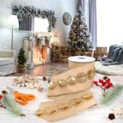 4 In. HGTV Home Collection Sequin Beaded Taffeta Ribbon, Beige