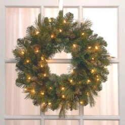 24 In. Pre-Lit Crestwood Spruce Wreath With Warm White LED Lights
