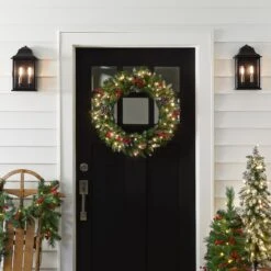 24 In. Pre-Lit Frosted Berry Wreath With Clear Lights, Plug-In