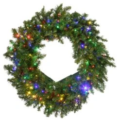 24 In. Pre-Lit Norwood Fir Wreath With Battery Operated Multicolor LED Lights