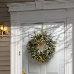 24 In. Pre-Lit Snowy Morgan Spruce Wreath With Dual Color LED Lights
