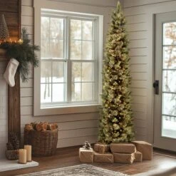 10 Ft.Pre-Lit Kingswood Fir Pencil Slim Tree With Clear Lights