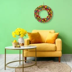 18 In. Spring Wreath With Colorful Daisies, Hydrangeas, Roses, Leafy Greens