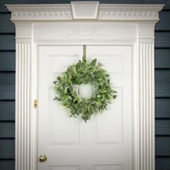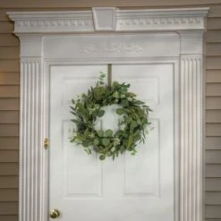 22 In. Spring Wreath With Eucalyptus Leaves, Baby’s Breath, Flowing Green Stems