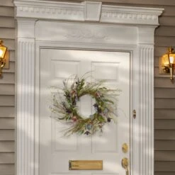 22 In. Spring Wreath With Eucalyptus Leaves, Lavender, Flowing Green Stems