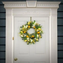 22 In. Spring Wreath With Yellow Tulip Blooms, Lemons, And Forsythia Flower Blossoms