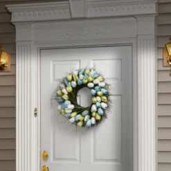 24 In. Spring Wreath With Mixed Flower Blooms And Flowing Green Stems