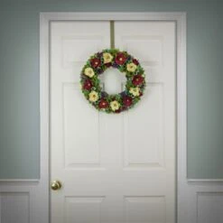 18 In. Spring Wreath With Red And Cream Assorted Wood Cut Flowers, Flowing Green Leaves