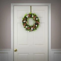 18 In. Spring Wreath With Assorted Flower Blooms, Roses, Seed Pods, Flowing Green Stems