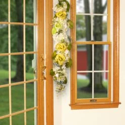 48 In. Spring Floral Wall Décor With Yellow Roses, White Hydrangeas, Berry Clusters